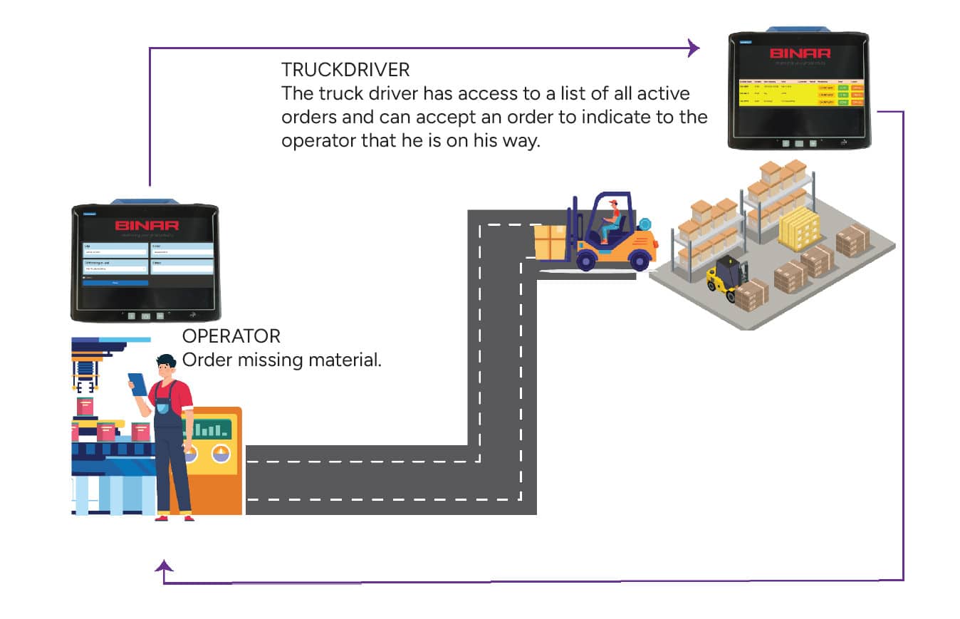 Mandon, which stands for Material Andon, functions as an advanced ordering system. Operators can place orders via a Pc or a tablet, instantly notifying truck operators to ensure the team always has the necessary resources.